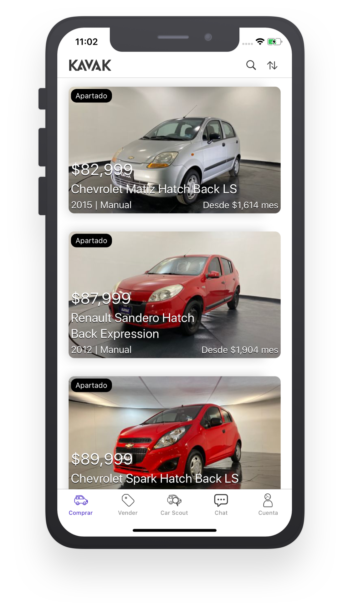 E-commerce where you can buy and sell used cars directly using Kavak's platforms. It's the easiest and safest way to acquire and sell cars in Mexico, currently expanding to Argentina and other countries, providing a world-class experience to users and the peace of mind that Latin America needed when getting a used car.